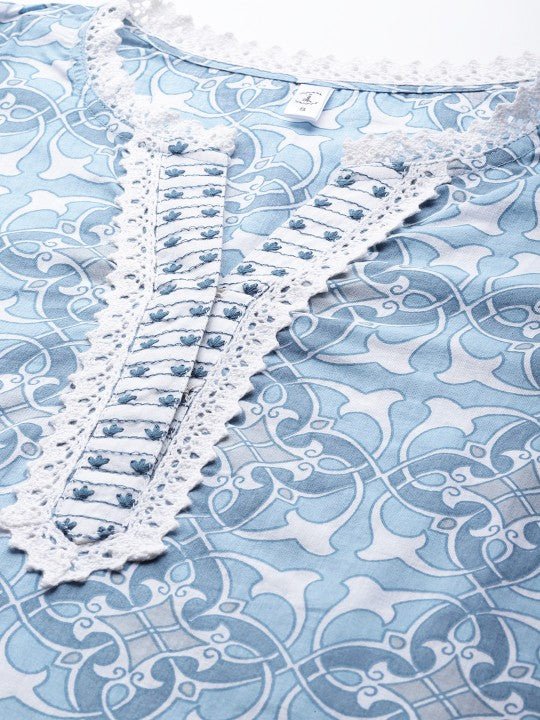 Women Floral Printed Pure Cotton Kurta With Palazzo With Dupatta - XS
